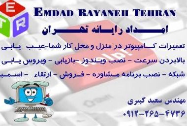 تعمیر کامپیوتر در آذری با سرویس رایگان – امداد رایانه تهران تلفن تماس: ۰۹۱۲۲۶۵۴۷۳۶ و ۴۴۱۰۰۳۳۴-۰۲۱ و ۰۹۳۰۹۵۰۲۸۶۵ Saeedka57@yahoo.comدر استان تهران